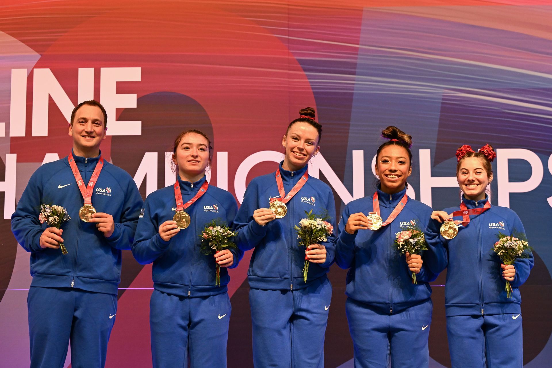 Susan Gill (Senior - Double Mini & Tumbling), Channing Kim (Junior - Trampoline), Grayson Niehus (Elite Development - Trampoline), Casen Kim (Elite Development - Tumbling), Elliott McCraw (Jumpstart - Trampoline), Blakeli Maiale (Jumpstart - Tumbling)